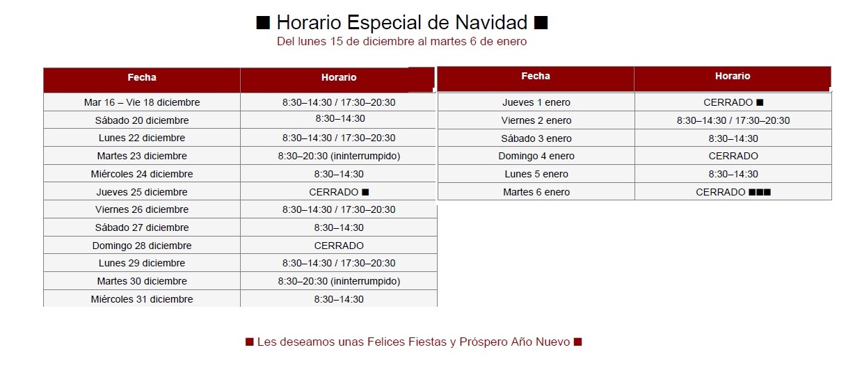 De Lun a Sab 08.30 a 14.15 | tardes de Martes y Viernes de 18 a 21